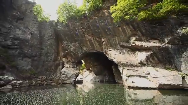 햇빛이 동굴을 비추면 물 위로 빛의 입자들이 반짝인다.