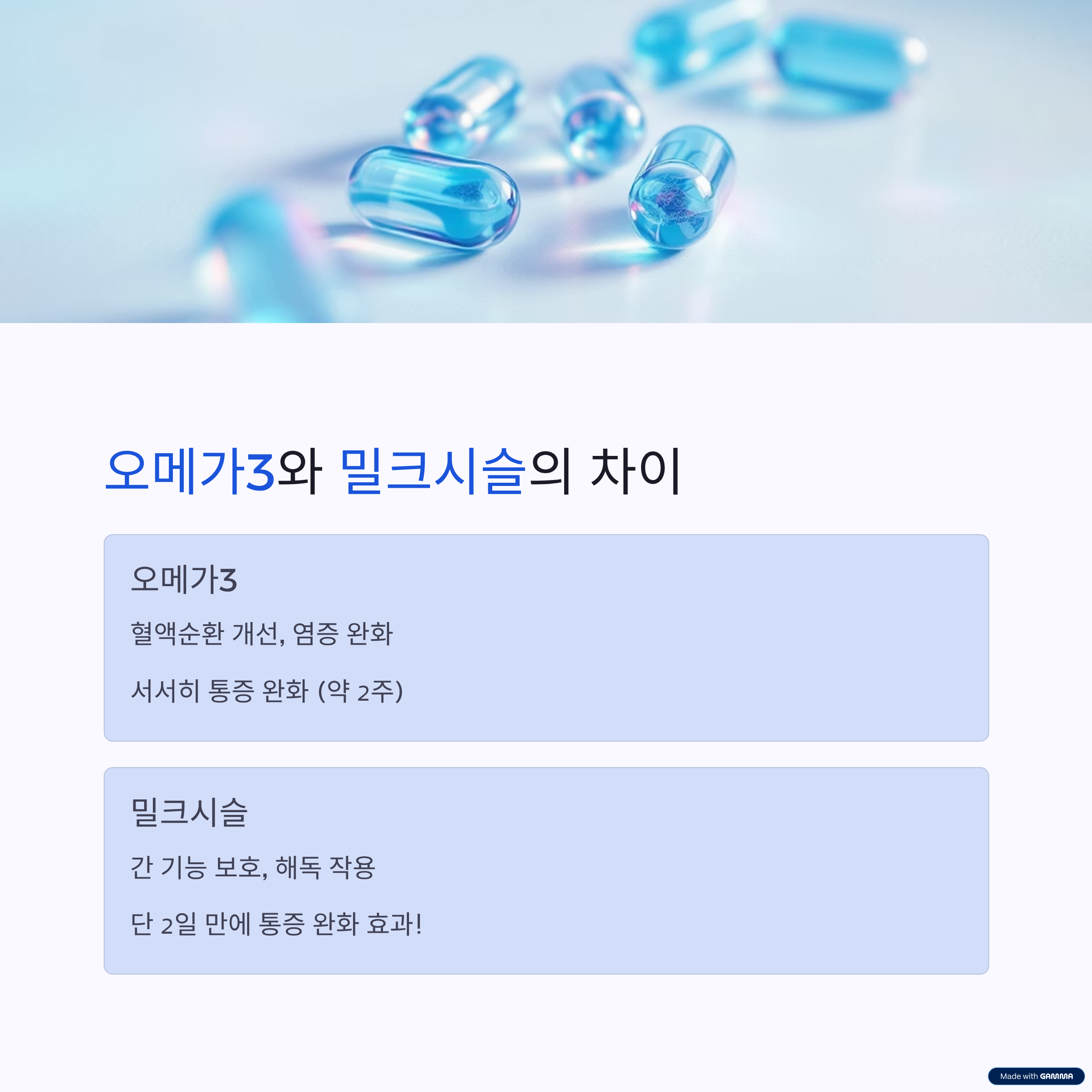 개인차는 있지만, 저처럼 두 제품을 병행하면 단기 효과(밀크시슬)와 장기 관리(오메가3)를 동시에 잡을 수 있습니다.