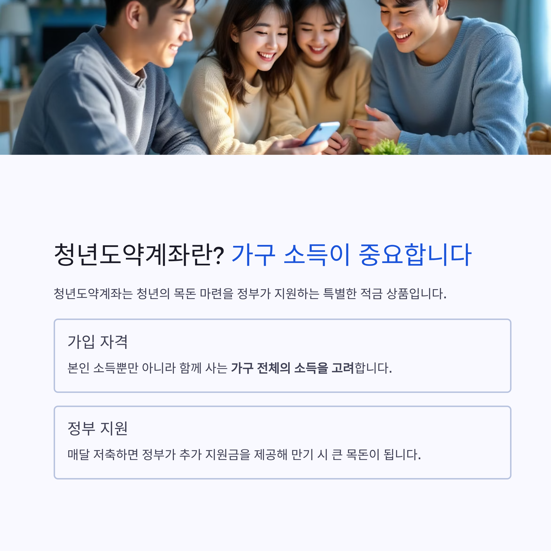 이때 가입 자격은 본인 소득만 보지 않고, 가족 전체(가구)의 소득을 함께 고려합니다. 그래서 ‘나 혼자 소득이 적다’고 해서 무조건 가입되는 건 아니며,같이 사는 가족의 소득도 함께 확인해야 합니다.